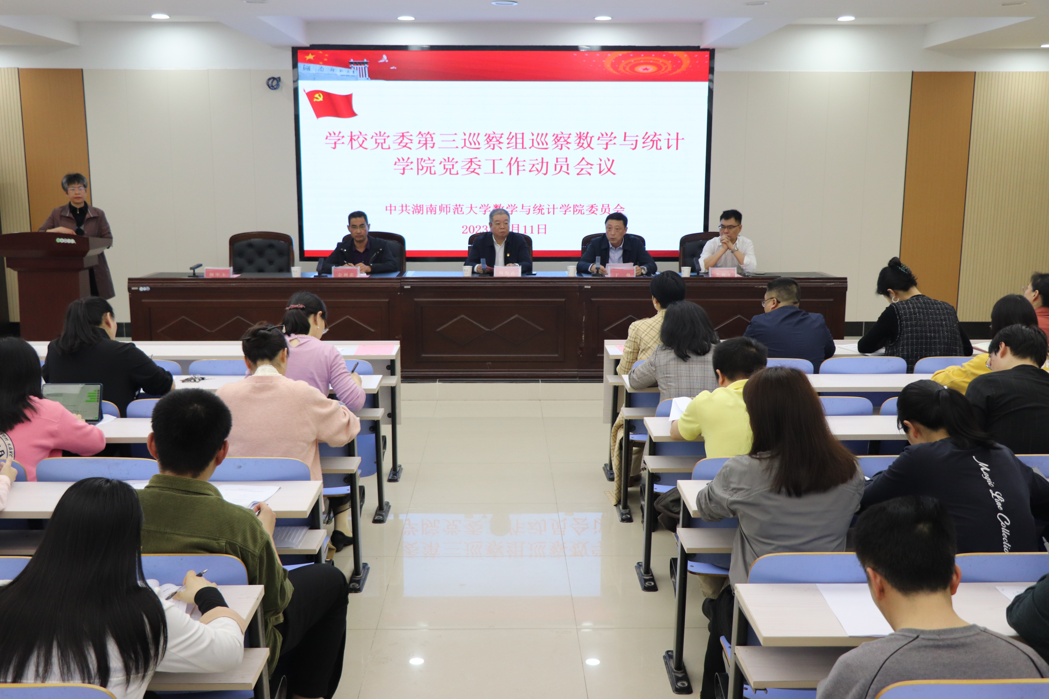 2023年4月11日下午,党委第三巡察组巡察太阳成集团tyc党委工作动员会在太阳成集团tyc309报告厅召开。校党委副书记、校党委巡察工作领导小组副组长周俊武,党委巡察办副主任佘利忠,校党委第三巡察组组长于烽及全体成员,太阳成集团tyc学院党委、行政领导班子成员出席会议,太阳成集团tyc院长李利平等列席会议。会议由太阳成集团tyc党委书记颜中玉主持。