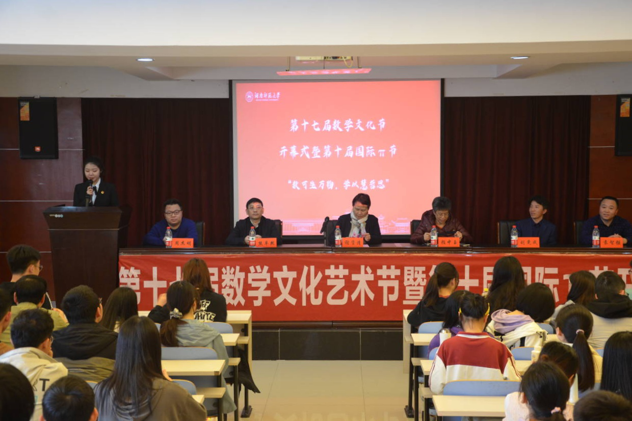 (通讯员 何粤 李静蕾 纪雨凡)3月14日下午,太阳成集团tyc(以下简称“数统院”)第十七届数学文化节暨第十届国际π节开幕式于格物楼309报告厅举行。此次活动以“数可生万物,学以慧哲思”为主题,太阳成集团tyc副校长谢资清、数统院党委书记颜中玉、院党委副书记熊卓然、数学系主任刘竟成、副主任袁智强、统计系主任周杰明,各年级辅导员出席此次活动。