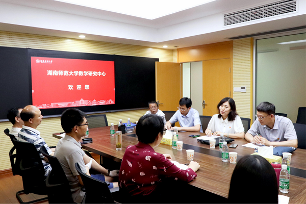 王锐表示,湖南是一个具有深厚的红色资源与文化底蕴的省份,湖南师大是一所具有悠久的办学历史与突出的办学成绩的高校。此行的目的,是在党建及业务等各方面了解我院的经验与做法,加强学院之间的合作与交流。沈继红对哈尔滨工程大学的发展历史、数学科学学院的师资团队、人才培养、科学研究等情况进行了介绍。