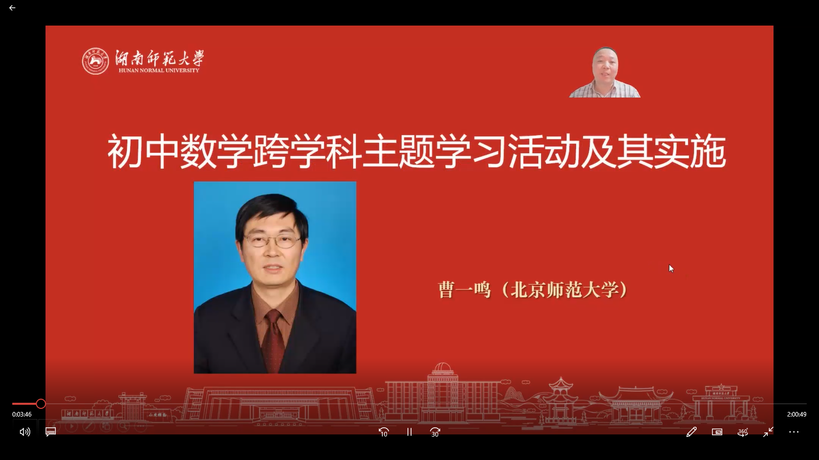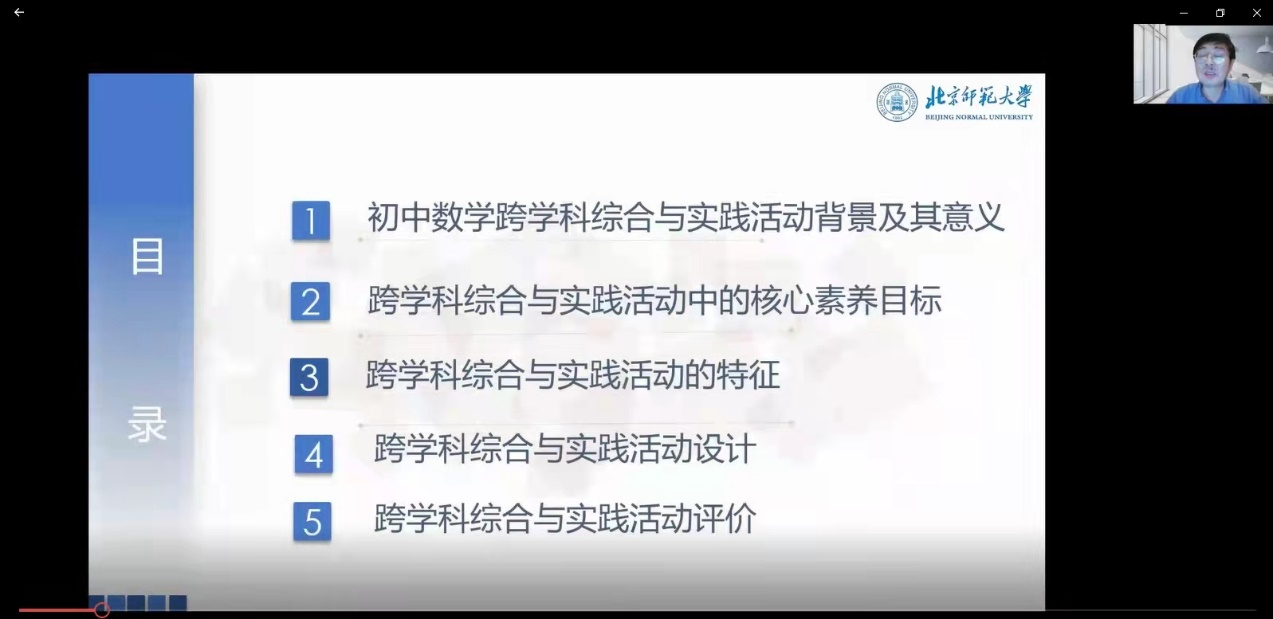 2022年4月23日星期六19:30-21:30,北京师范大学曹一鸣教授做客太阳成集团tyc“麓山数学教育论坛”,通过腾讯会议平台进行了一场主题为“初中数学跨学科主题学习活动及其实施”的讲座。此次讲座由数学系副主任袁智强主持。