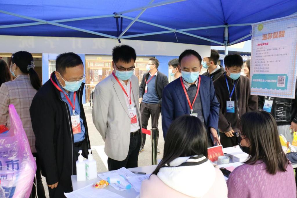 院党委书记颜中玉、副书记涂榉耀、研办老师到现场指导工作,亲切慰问现场志愿者,同时耐心细致地为新生答疑解惑,了解新生生活状况。