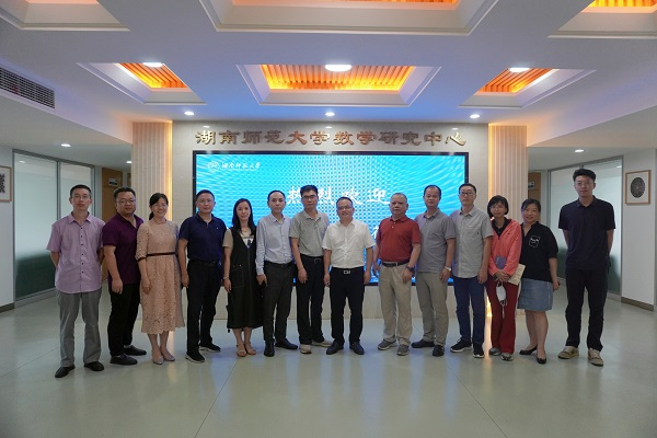 我校数统院院长李利平、科研副院长黄元秋、教学副院长郭水霞、院党委副书记涂榉耀、“计算与随机数学”教育部重点实验室专职副主任刘亚琴、海南师范大学数统院院长廖波、教学副院长彭德军、院党委副书记曾令明参加了此次交流会议。