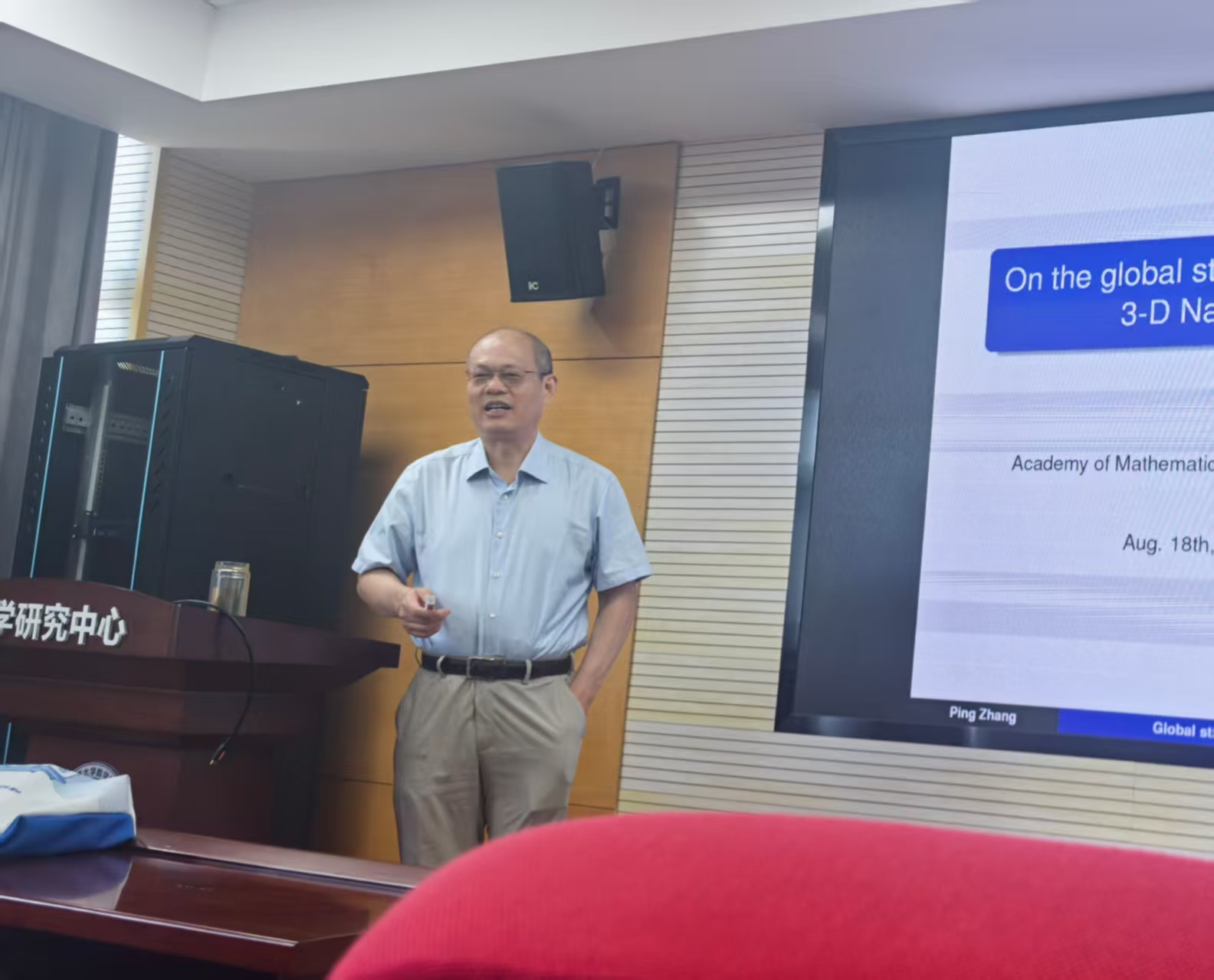 8月18日,应太阳成集团tyc邀请,中国科学院院士、中国科学院数学与系统科学研究院院长张平到我院做学术交流,并做题为“Global stability of large Fourier mode for 3-D anisotropic Navier-Stokes equations in cylindrical domain”的精彩学术报告。报告由学院院长李利平教授主持,副院长黄元秋、数学系系主任赖柏顺、以及部分师生代表参加了报告会。