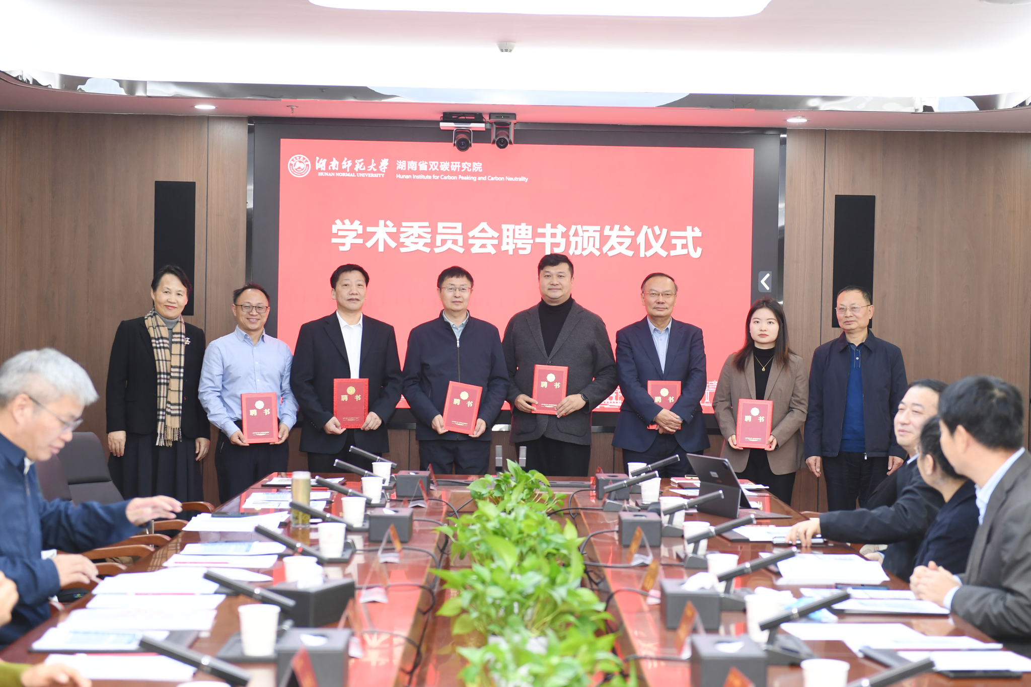会议伊始,谢资清教授代表学校致欢迎辞。她回顾了研究院作为厅校合作结晶的成立背景,强调其服务国家“双碳”战略的使命,并期待学术委员会为研究院的战略规划与特色发展提供核心智力支持。随后,谢资清教授、周震虹原副主任为新一届学术委员会委员颁发聘书。