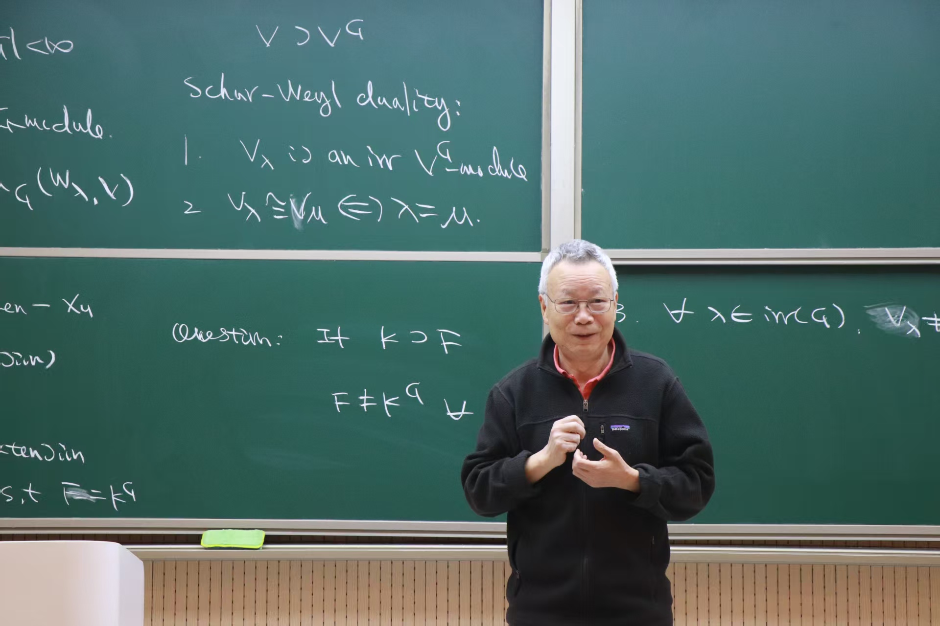 董崇英教授围绕顶点算子代数的表示论相关前沿问题和核心成果展开分享,并详细阐释了有理VOA、融合范畴等关键概念。报告内容拓宽了数统院师生的学科视野、启发了代数方向研究的新思想。