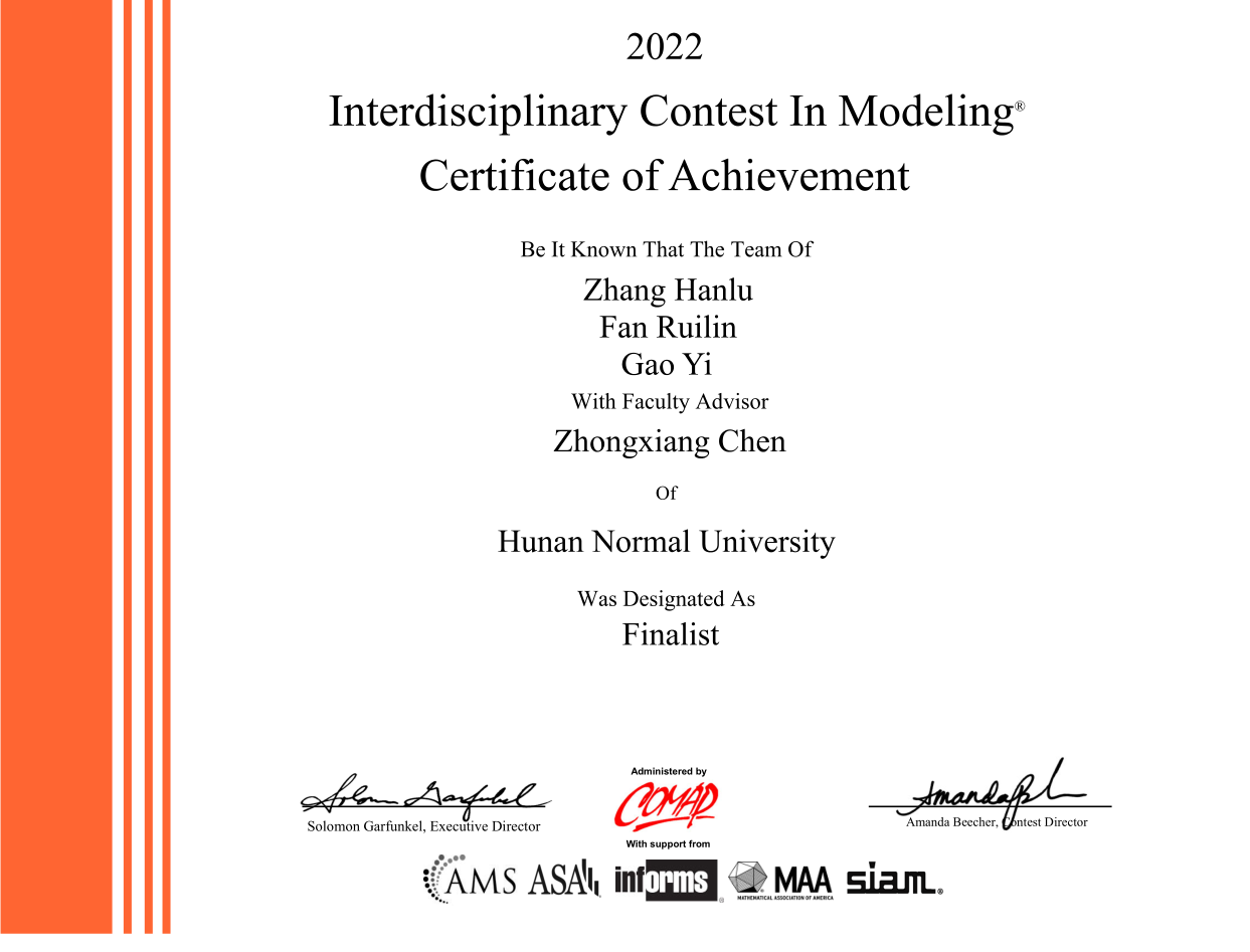 我校学子在2022年美国大学生数学建模竞赛(MCM/ICM)中喜获佳绩