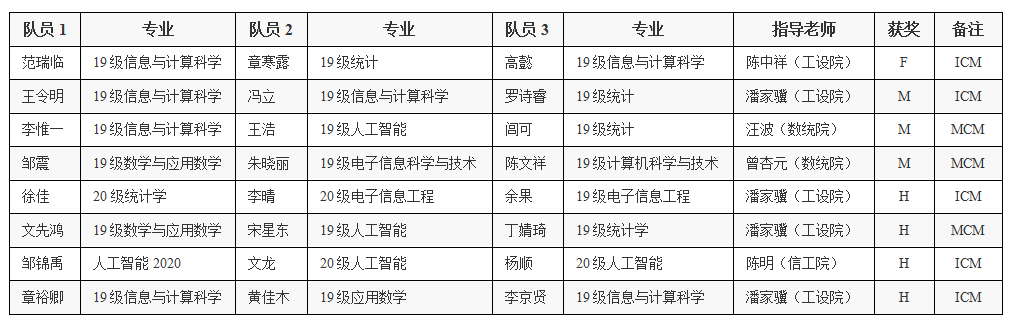 1.2022年我校美国数学建模竞赛(MCM/ICM)获奖成绩表