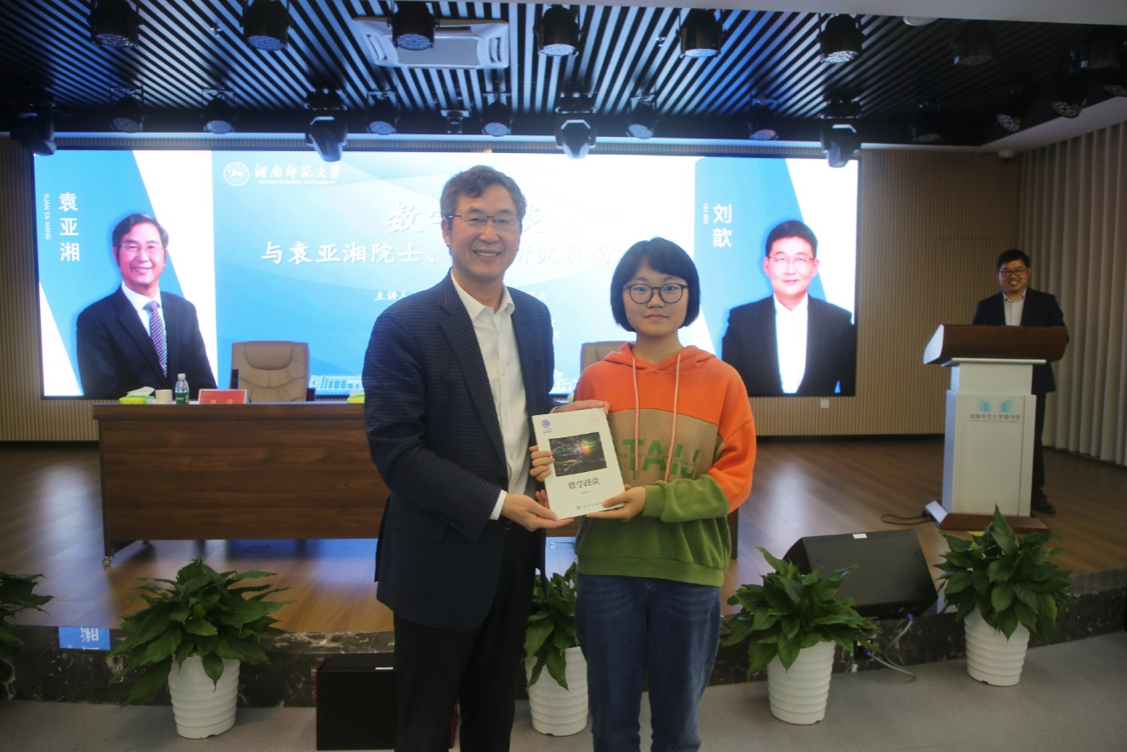 在交流互动环节,与会学生从如何平衡学科竞赛与专业成绩、如何体会数学之美等方面进行提问,袁亚湘、刘歆为同学们解答。