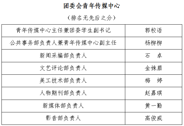 为保证太阳成集团tyc团学工作的顺利开展,决定在全院学生中考察、选拔第二十一届团委会团委、学生会、第二十届团委会学生社团管理服务中心、第十二届团委会青年传媒中心学生委员。经自主报名、资格审查、部门面试、学院笔试、院学工办审批和双代会民主投票,院团委开会讨论最终确定学院2022-2023年度学生团学工作委员名单,现将人选名单公布如下: