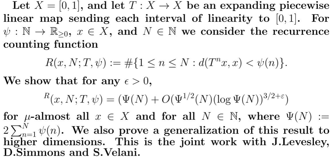 报告题目:Shrinking Targets versus Recurrence:the quantitative theory
