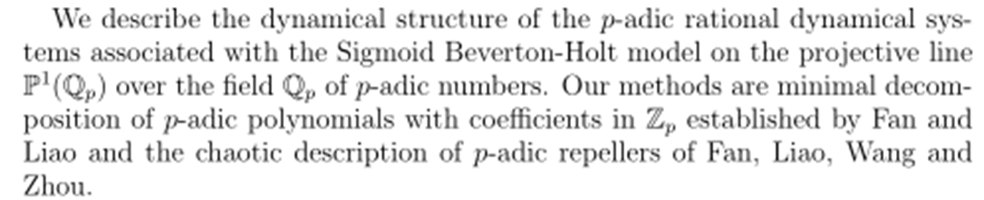 报告题目:Rational maps associated with the Sigmoid Beverton-Holt model on the projective line over Q_p